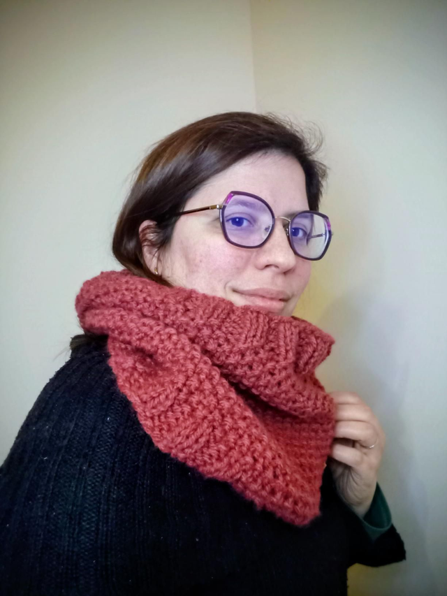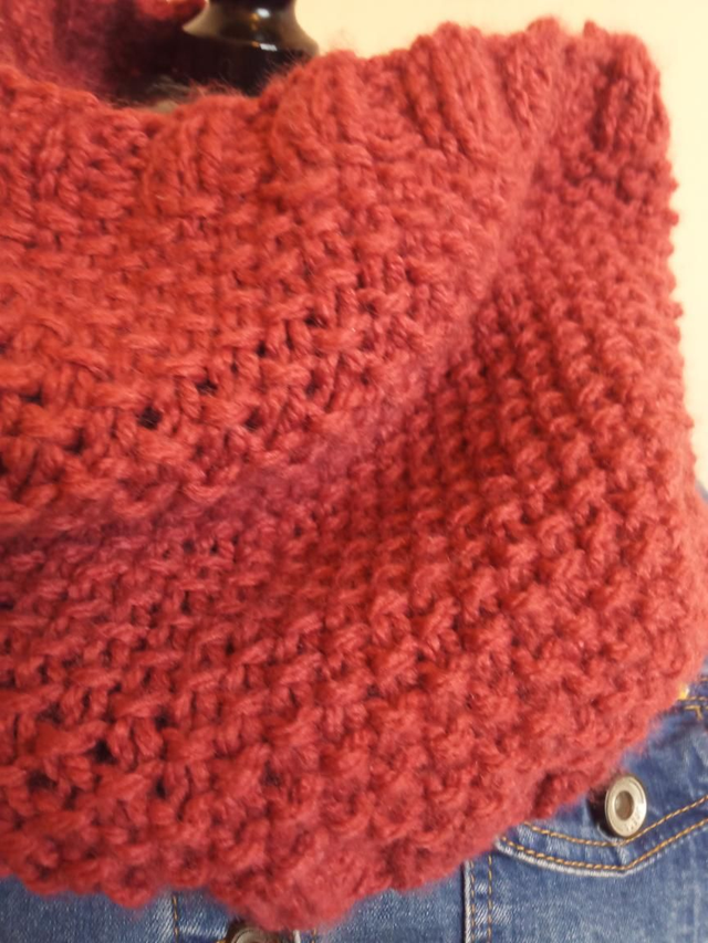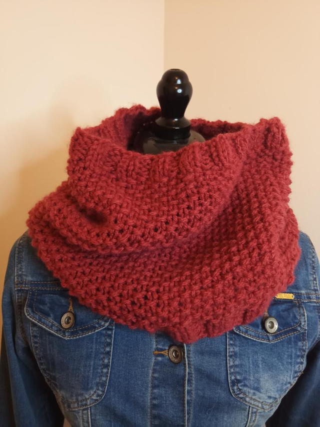 Un tour de cou tricoté à la main, chaud, doux et confortable.